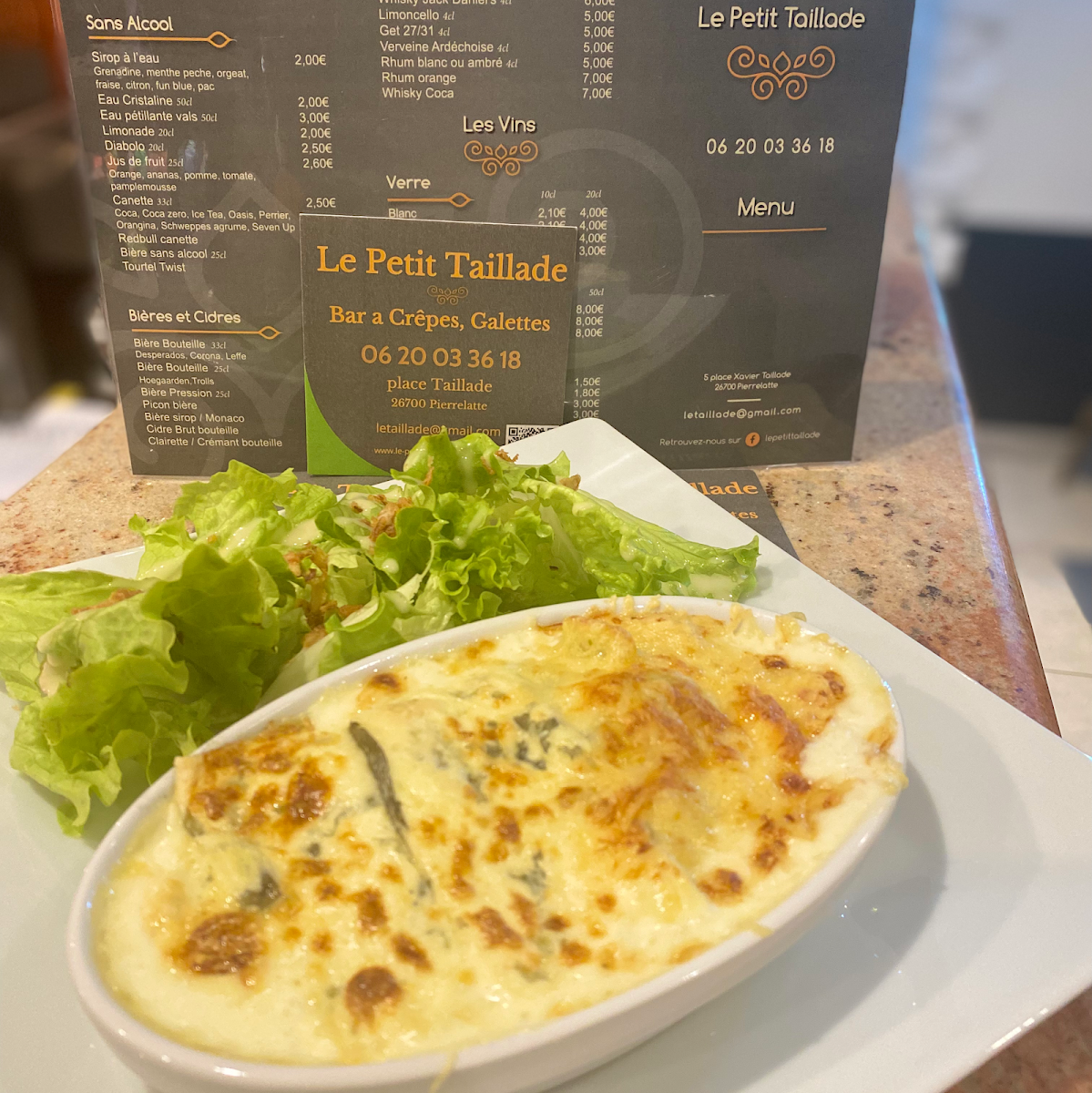 Le Petit Taillade offers a delightful menu that combines French flavors with a touch of modernity. A standout dish is the Bagel Saumon, a perfect blend of fresh smoked salmon, avocado, and a tangy cream cheese spread, ideal for those seeking a light yet satisfying meal. For a classic option, the Caesar Salad shines with its crispy romaine lettuce, creamy dressing, and crunchy croutons, making it a refreshing choice for lunch or dinner. The menu also features hearty options like the grilled meats and fresh seafood, all prepared with locally sourced ingredients. Each dish is thoughtfully crafted, with a focus on simplicity and quality, making Le Petit Taillade a go-to spot for both casual diners and those looking for a refined dining experience.